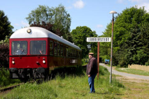 Seit einigen Tagen verkehrt auf der Strecke Winsen – Hützel ein neuer Großraum-Triebwagen der OHE; er löste den Dampfzug ab.